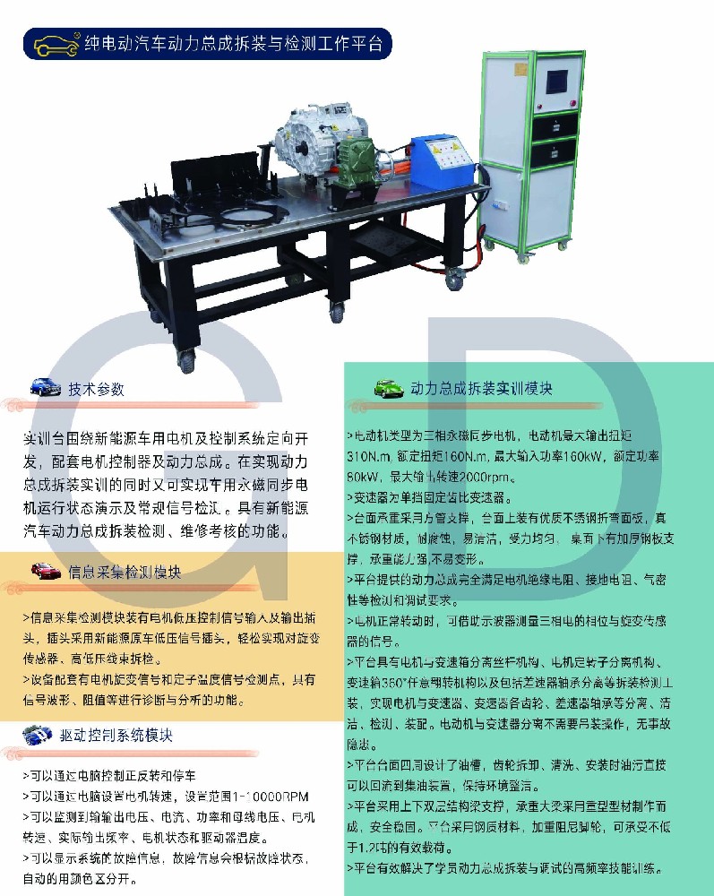 純電動汽車動力總成拆裝與檢測工作平臺