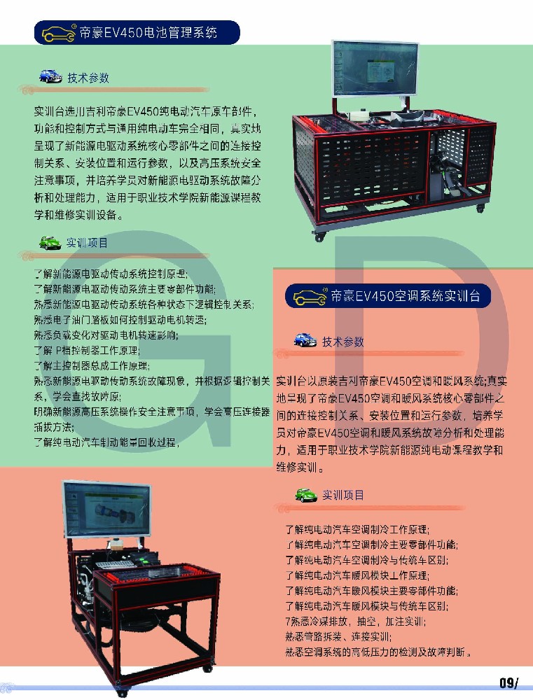 帝豪EV450電池管理系統實訓臺&空調系統實訓臺