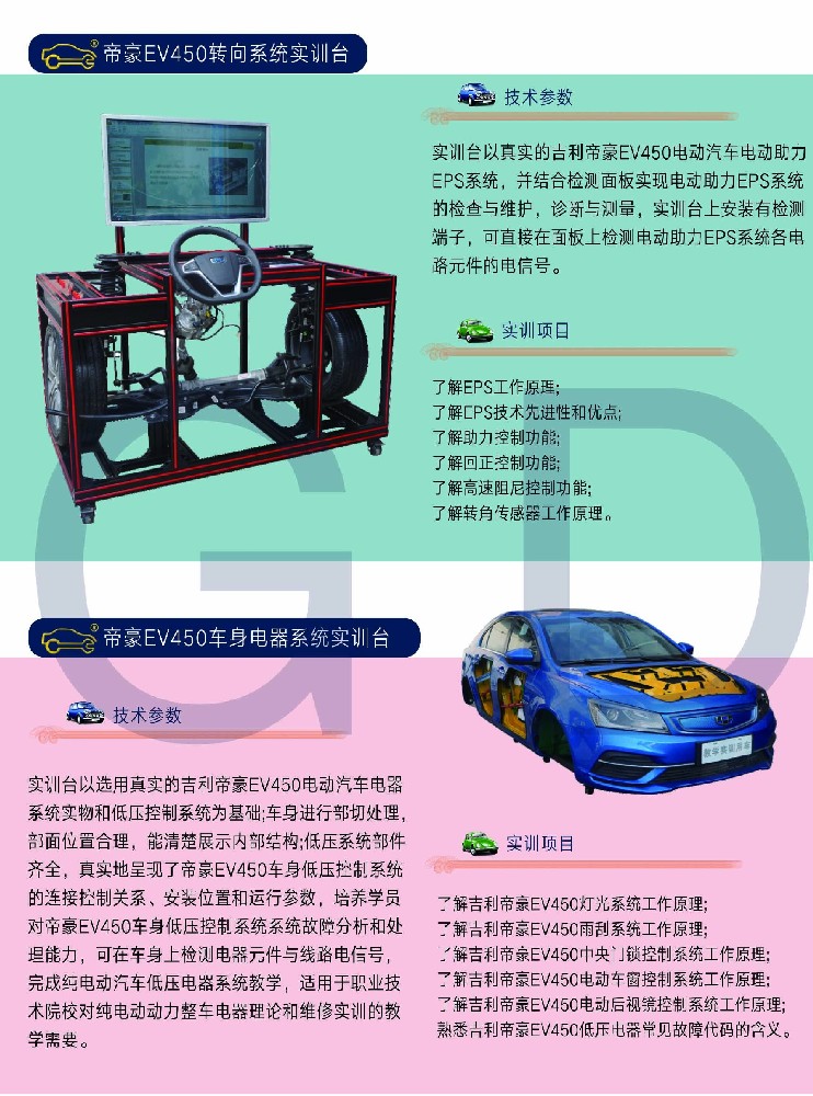 帝豪EV450轉向系統實訓臺&車身電器系統實訓臺