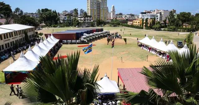肯尼亞總統(tǒng)烏胡魯·肯雅塔、副總統(tǒng)威廉·魯托及肯教育部官員出席了貨物交接儀式;中國駐肯尼亞大使館參贊姚明和中航國際肯尼亞代表處副總代表蘇天舒作為中方代表參加了該儀式。此次交接的貨物包括汽車維修設(shè)備、機電一體化設(shè)備、焊接設(shè)備等。儀式結(jié)束后,貨物將被分頭運往肯尼亞境內(nèi)20所大中專職業(yè)院校。